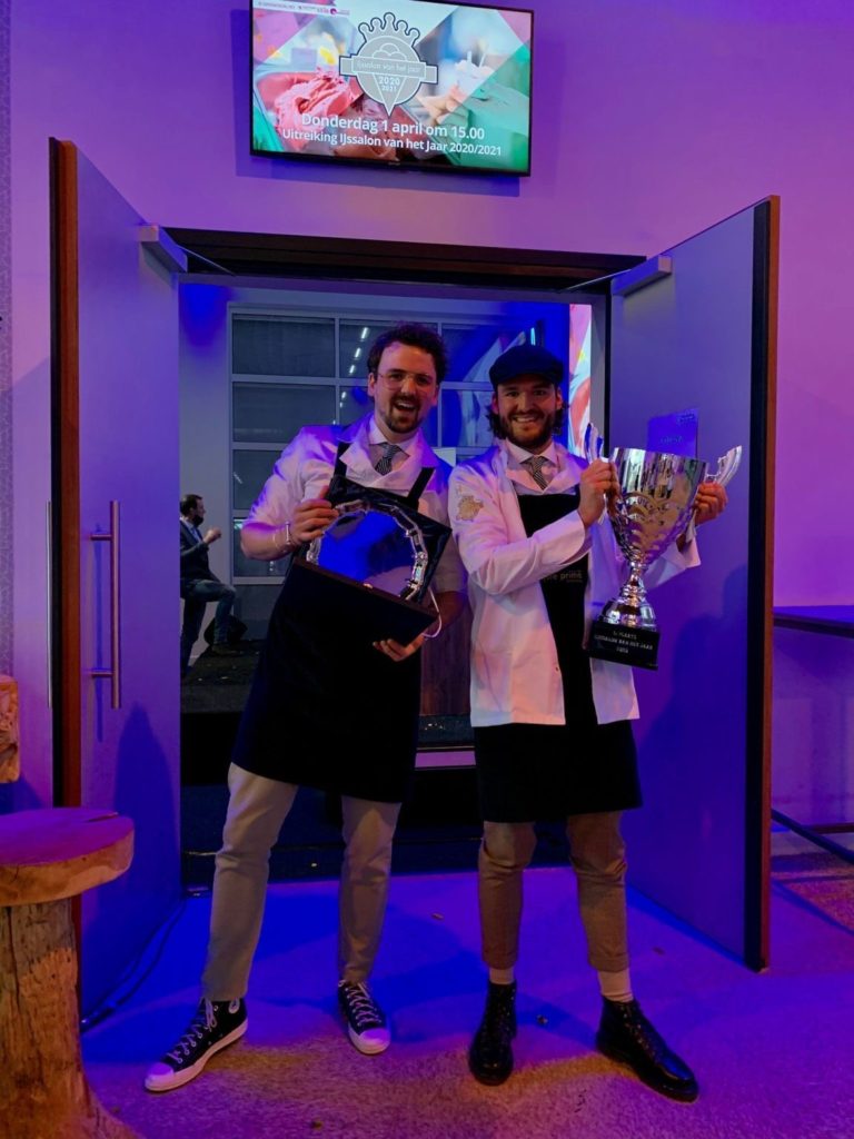 Later, als de broers wat bijgekomen zijn, vertelt Kees Baars Jr. dat het een spannend jaar is geweest. “Vorig jaar gingen we als finalist het ijsseizoen in. En meteen stond corona voor de deur. Natuurlijk had het onze focus om de zaak zo goed mogelijk draaiende te houden. We hebben onze weg daarin gevonden.” De bekendmaking van IJssalon van het Jaar bleef voor de broers spannend tot het laatste moment. “Het is een sterk deelnemersveld. Iedere finalist is echt met zijn vak bezig. We hebben lang moeten wachten op deze uitreiking en op het moment suprême waren we superzenuwachtig. En als het dan lúkt: wat een geweldig gevoel!”
